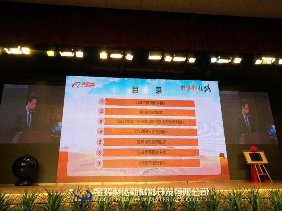 暨首届“宝鸡百宝”颁奖仪式。此次会议由:宝鸡市人民政府主办;协办单位:中国电子商务产业园发展联盟以及阿里巴巴(中国)网络技术有限公司;承办单位:宝鸡市商务局、宝鸡市陈仓物流园区开发建设管理委员会、宝鸡电视台、阿里巴巴跨境电商宝鸡运营中心联合主办。