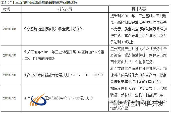 但我国距离制造强国仍有一定的距离,大而不强的问题依然突出,自主创新能力弱、关键核心技术欠缺、资源能源利用效率低、产业结构不合理、信息化程度不高等问题亟待解决。当务之急是通过积极发展高端装备制造业,加快突破关键技术与核心部件,从而带动制造业水平全面提升。为此,“十三五”以来国家陆续出台了一系列促进高端装备制造产业发展的政策文件。
